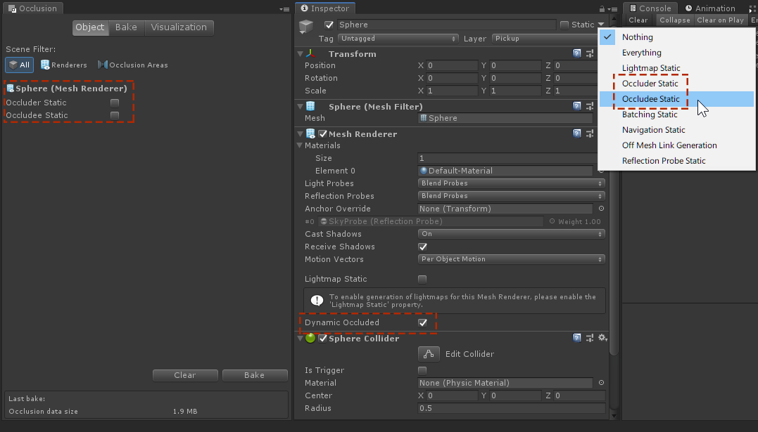 - Unity 编辑器中的 遮挡窗口(Occlusion window)。