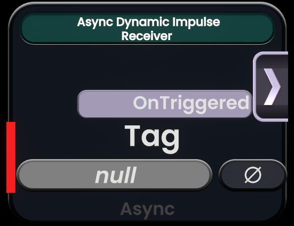 Async Dynamic Impulse Receiver(异步动态脉冲接收器)节点是动态脉冲在异步流程中的接收端。其触发对应节点是 Async Dynamic Impulse Trigger(异步动态脉冲触发器)。