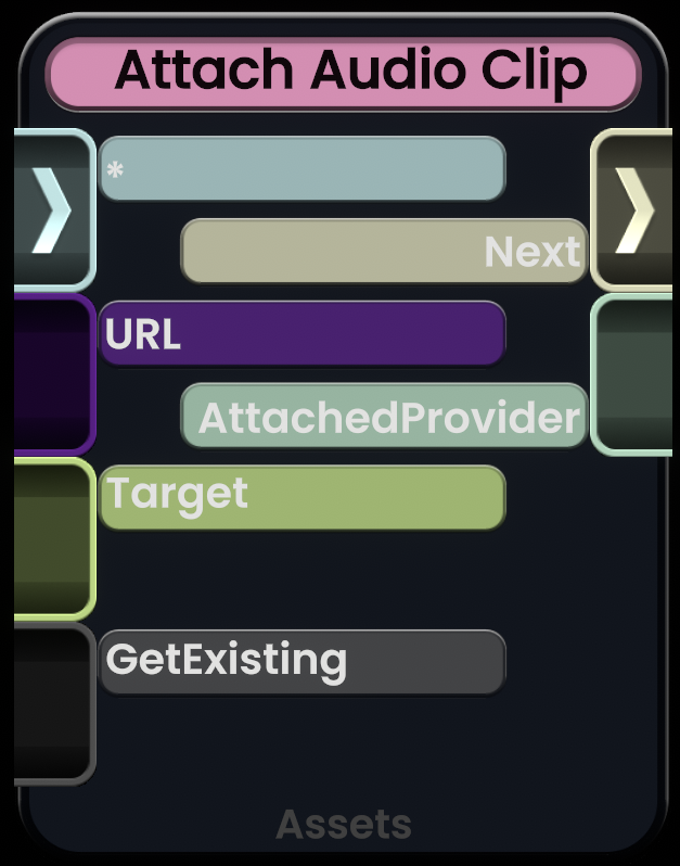 Attach Audio Clip(附加音频剪辑)节点允许您将提供的 URI 作为新的 StaticAudioClip(静态音频剪辑)组件附加,并返回 StaticAudioClip 原始 IAsset`1 本身。