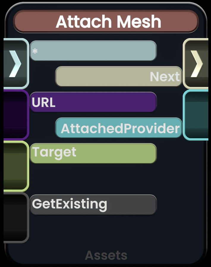 Attach Mesh(附加网格)节点允许将提供的 Uri 作为新的 StaticMesh(静态网格)组件附加,并返回 StaticMesh 原始 IAsset`1 本身。