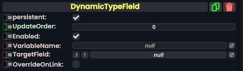 Bool | 当连接到变量空间时,是否使用此组件(所指向的字段)中存储的当前值覆盖空间中该动态变量的值。 |