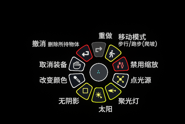 Light Tool 的轮盘菜单(Context menu)中包含三个不同的设置选项: