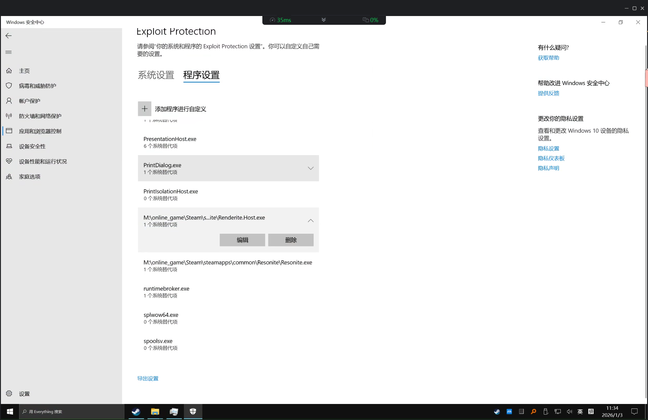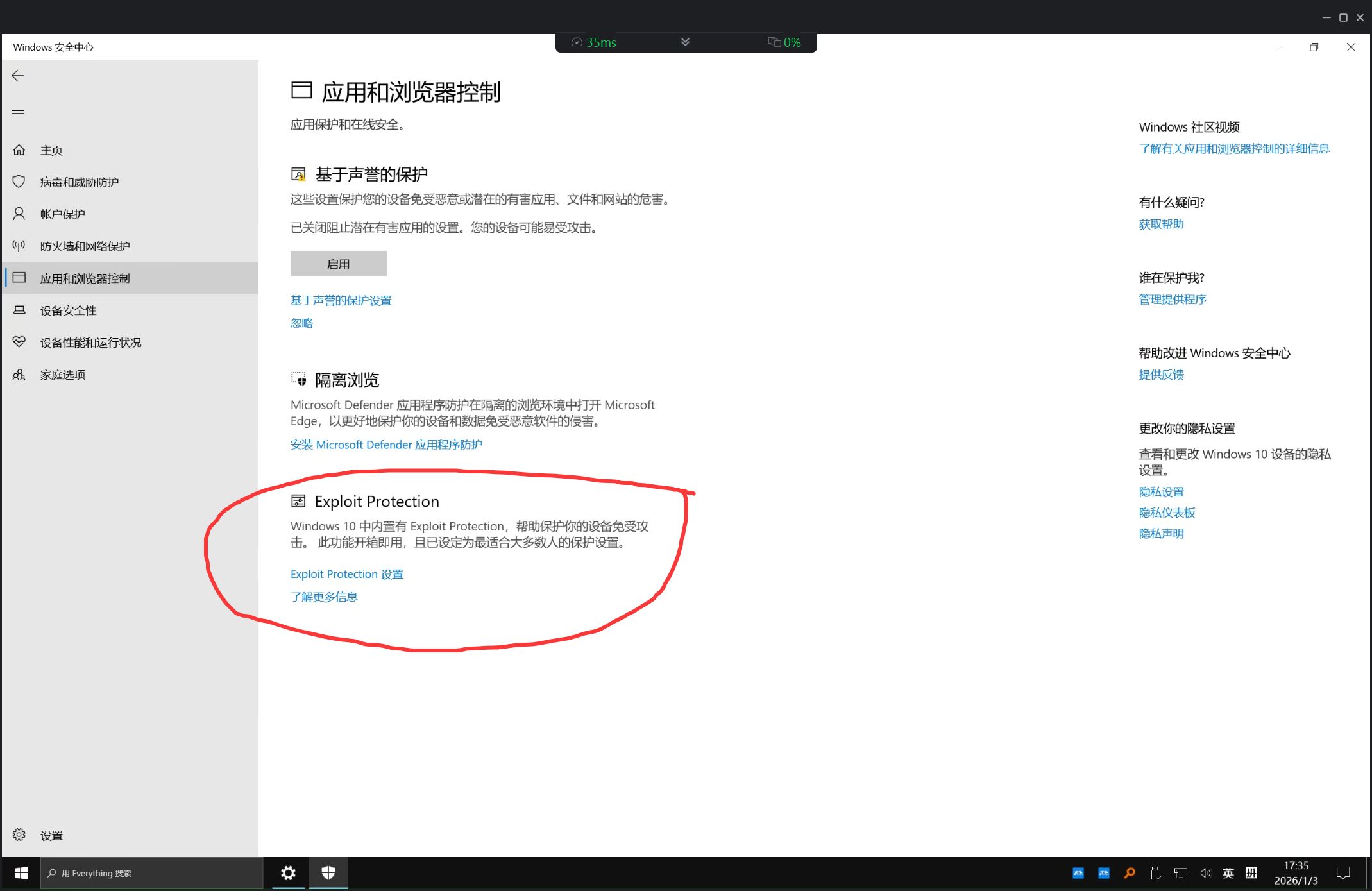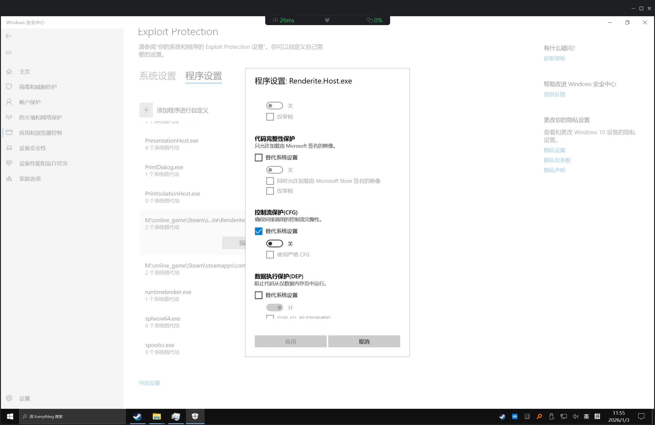 首先,你需要进入Windows安全中心,覆写CET(硬件强制实施的堆栈保护),进入Exploit Protection。