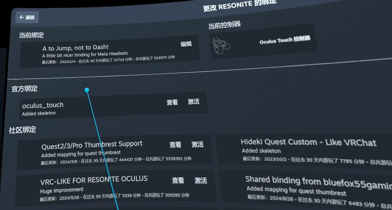 - Pico互联如果手柄休眠,在重连之后会导致Resonite控制卡住,从而无法操作。建议提前避免手柄休眠(如手势)。
