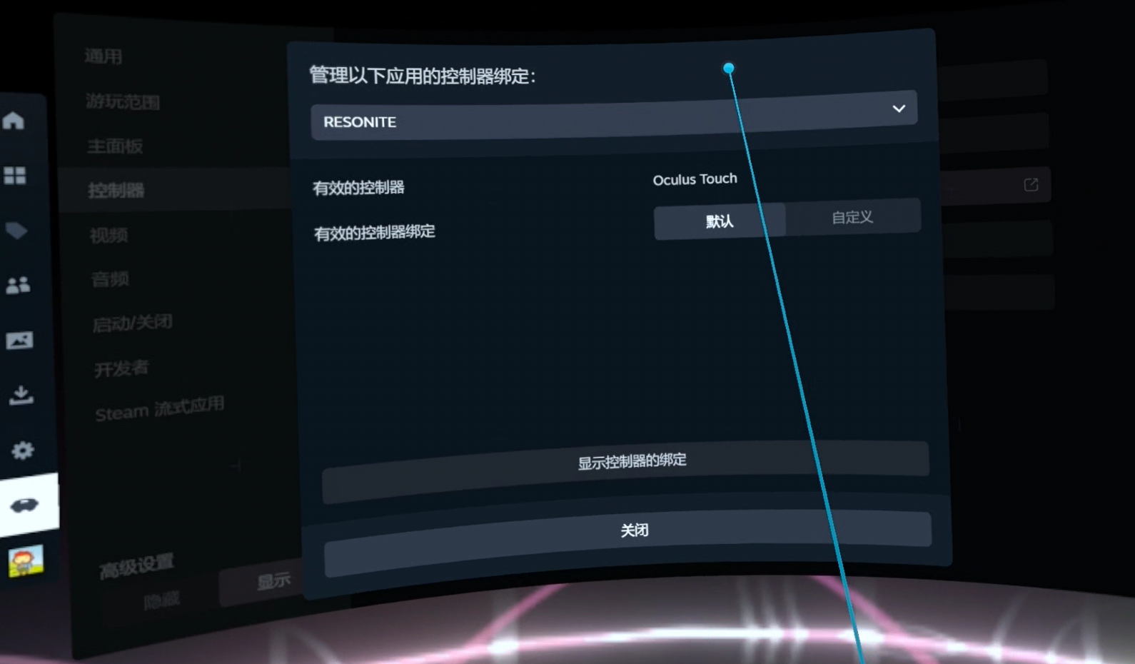 - 打开SteamVR,打开控制器绑定的相关选项。