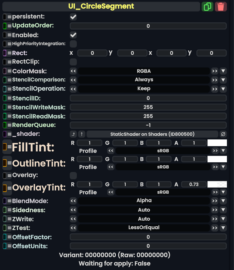 UI Circle Segment(UI圆形分段材质)用于在四边形上渲染弯曲的圆形。此组件只有在 CircleSegmentShaderMesh (圆形分段着色器网格) 上渲染时才能正常工作,因为它依赖于该网格生成的UV数据来创建视觉效果。