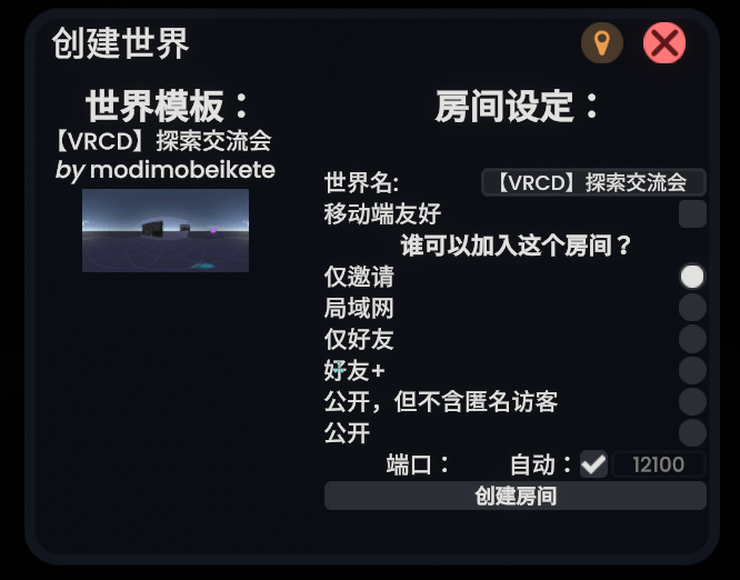 您也可以使用射线双击(或物理上快速触碰两次)世界球,这会直接开启一个房间。
