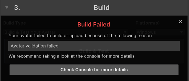虚拟形象构建成功,但构建结果不满足 VRCSDK 的要求。