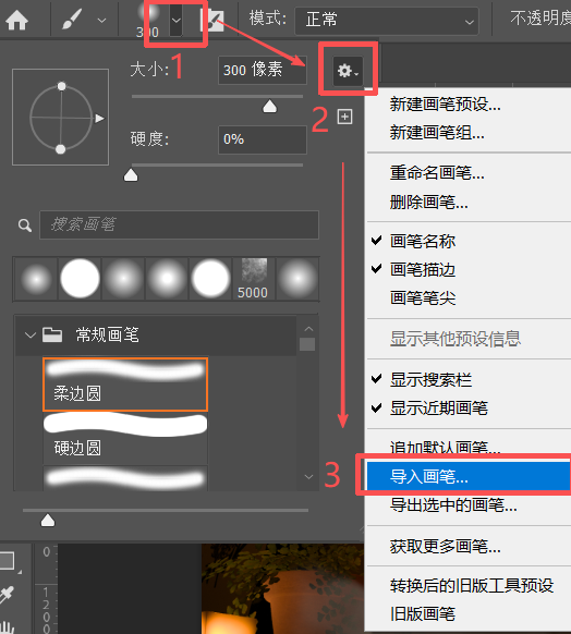 准备好文件后,按照下图所示,选择笔刷的ABR文件,您就导入成功了。在如图“常规画笔”文件夹栏目往下拉,您就能看到。