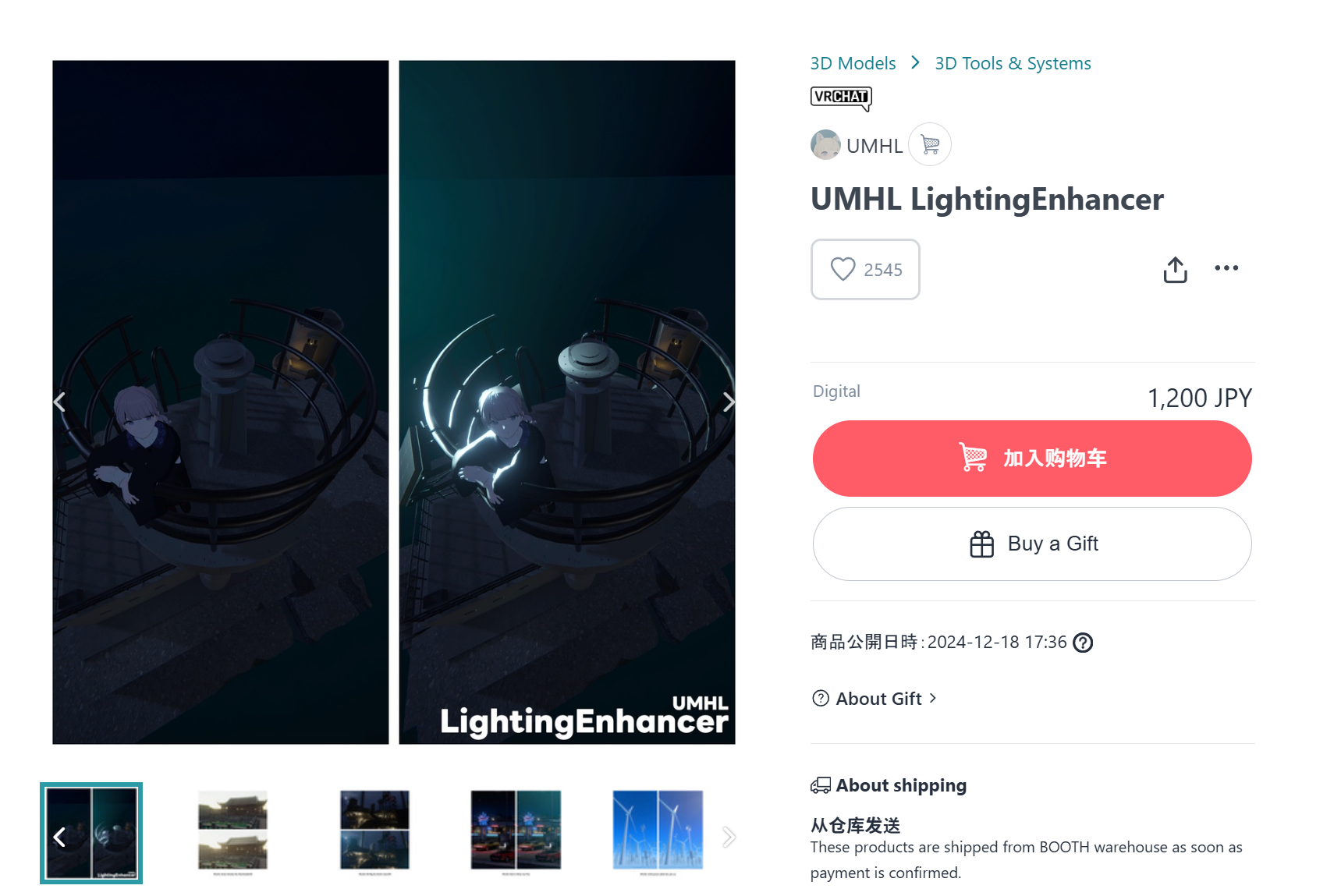 LightingEnhancer目前在Booth上售卖,链接:UMHL LightingEnhancer - UMHL - BOOTH
