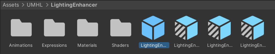 在导入unitypackage后,找到Assets/UMHL/LightingEnhancer/LightingEnhancer.prefab(或者LightingEnhancer_NoSync.prefab 无同步版)并将该prefab放入模型中成为子物体。安装非常简单,已经完成了。