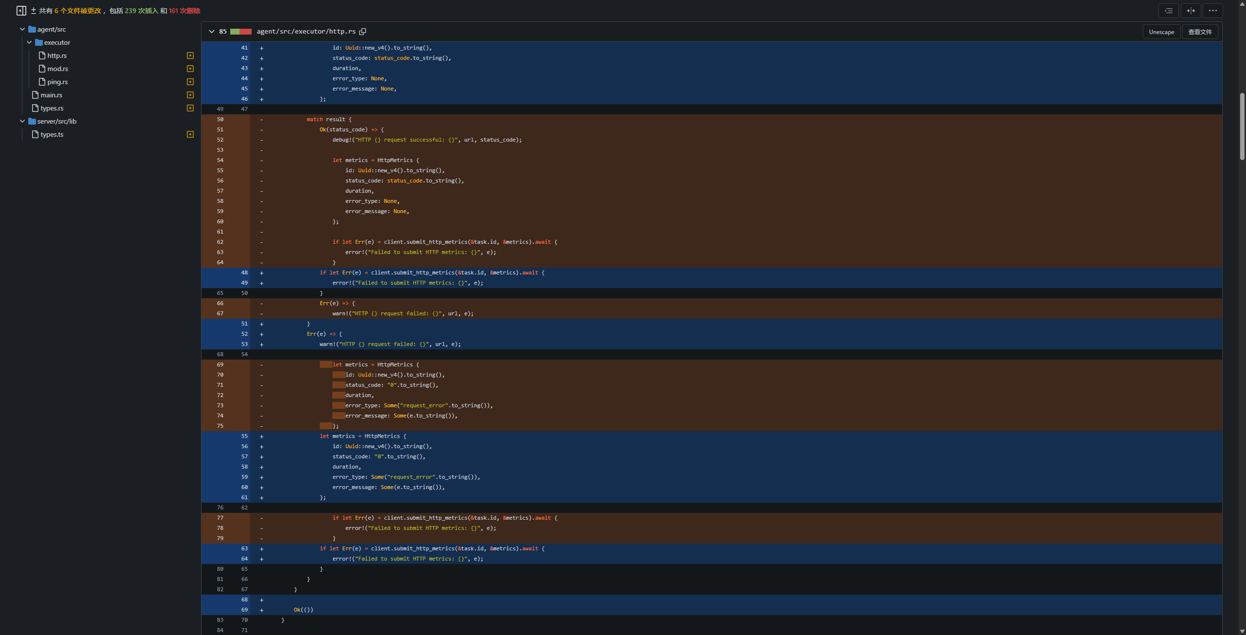git 会以行级别记录每个文件的变更,并且每次变更都可以看到文件之间的差异(增减行数 或 新建/删除 文件等)